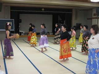 フラダンス体操教室を開催しました。寒くなってきましたが,フラダンスの衣装を見ると南国気分になります。今日は,基本の動きの練習をしっかり行いました。