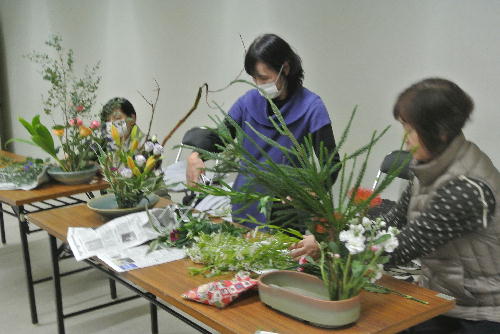 11月19日(土)フェスティバル前日準備にあわせて、フラワー教室を開催しました。作品は、明日のフェスティバルで、来賓控え室や玄関、昼食会場に展示していただきます。
