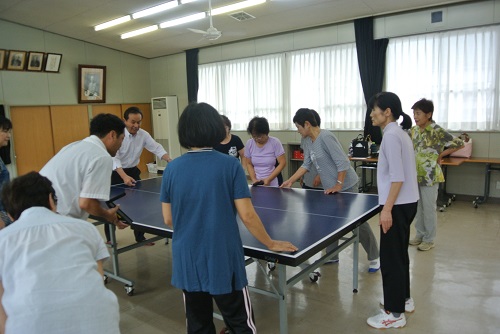 9月より卓球クラブを新規開設しました。サークル型のシニア特別教室です。初日の今日は、卓球台の設置から学びました。