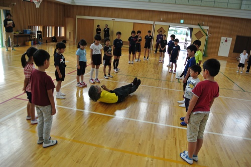 10月1日(日)午前中の講習会に引き続き、やまももクラブ・ミニテニスキッズ教室の親子対象に、荒木教授に実技研修会をしていただきました。