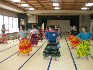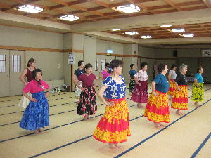 8月28日(火)フラダンス体操教室を開催しました。基本のステップを何度も何度も練習しています。