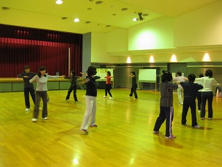健美体操教室を開催しました。寒くなってきたので,じっくりストレッチをして体をほぐしています。今日から新入会の会員さんも参加し,みんなで元気に活動しました。