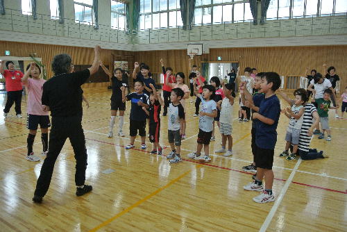 7月12日(日)徳島大学大学院の荒木秀夫教授をお招きし、コオーディネーション講習会&実技研修会を開催しました。午前中の講義には、町内幼小中学校教職員・保護者・指導者等約30名が参加し、理論を学びました。午後からの実技研修会では、やまももクラブの親子・指導者等約50名が参加し、荒木先生に直接指導していただきました。